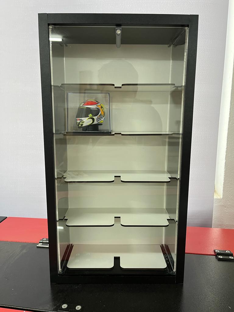 Expositor desenvolvido para os amantes de motovelocidade, criamos um único expositor para sua coleção MotoGP: Capacetes, escala 1/5 e Motos 1/18, desenvolvido especialmente para as coleções MotoGP Planeta DeAgostini e Altaya.