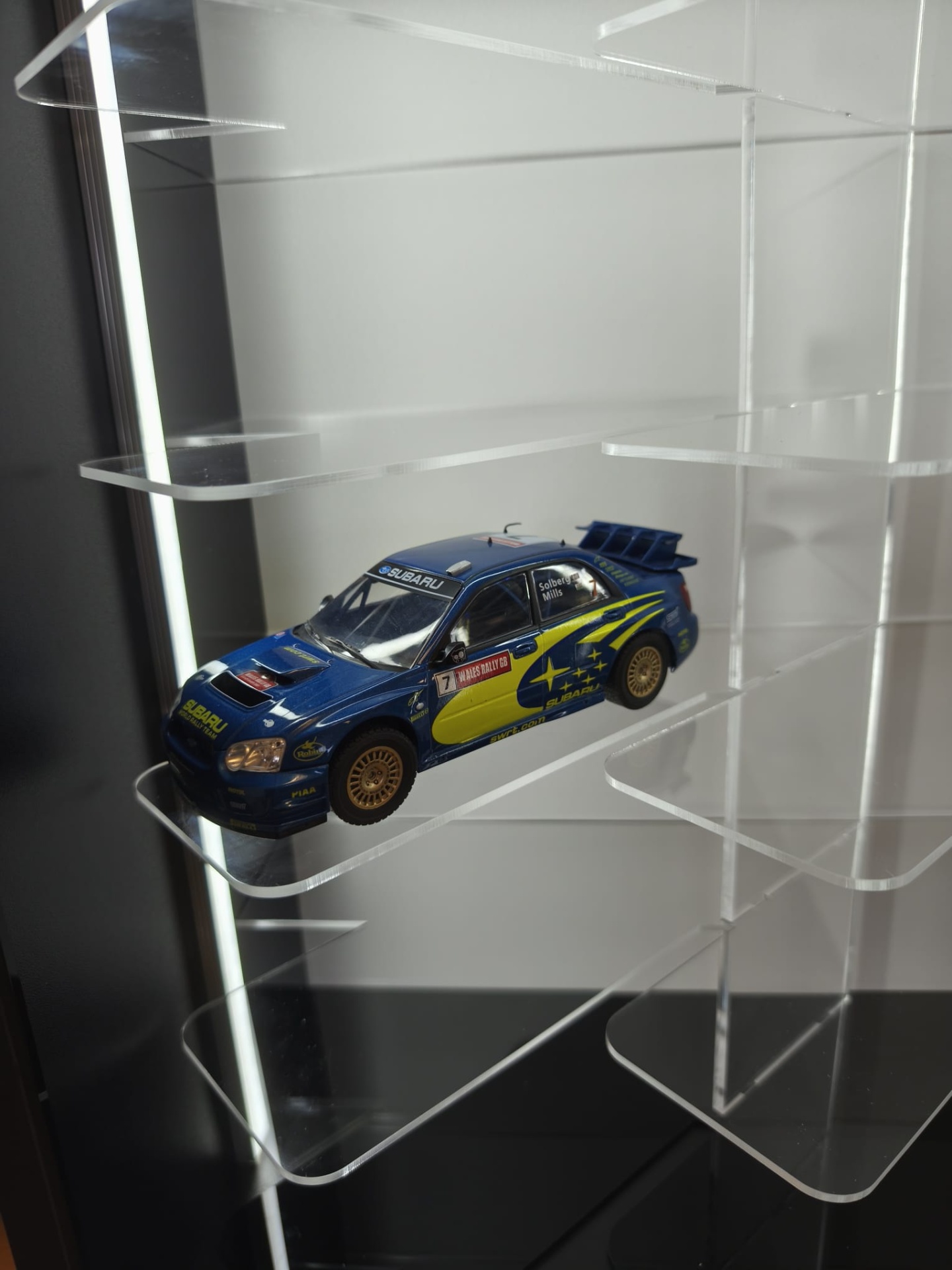 Ideal para motas em escala 1/18 (com base), carros em escala 1/43 (com base) e carros em escala 1/24 (sem base), este expositor combina funcionalidade, design moderno e acabamento de alta qualidade.