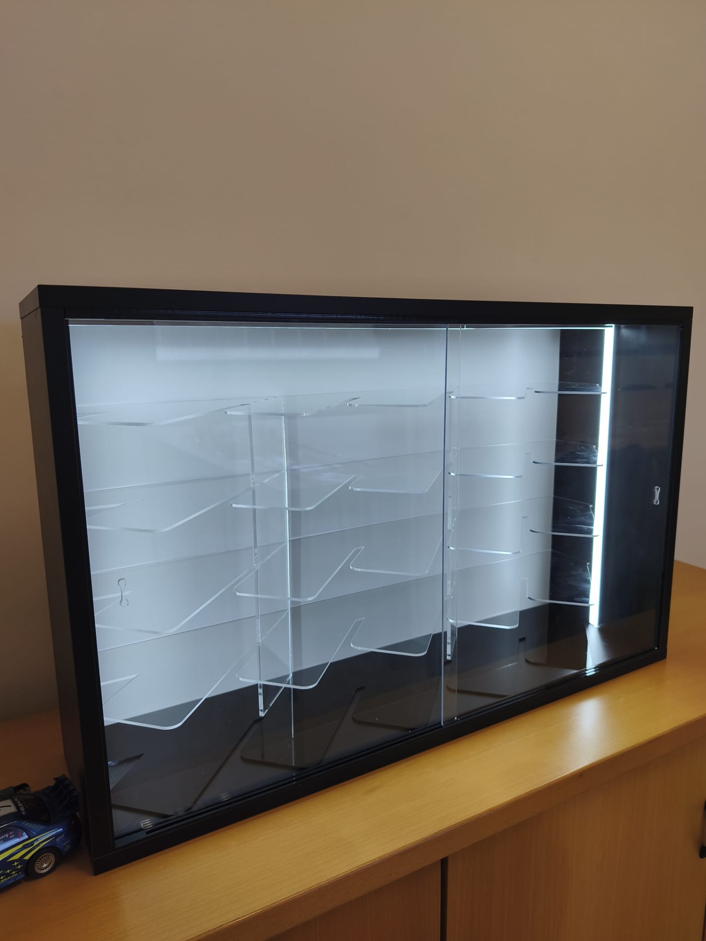 - Portas: em acrílico cristal de 3 mm, garantindo proteção e visibilidade perfeita