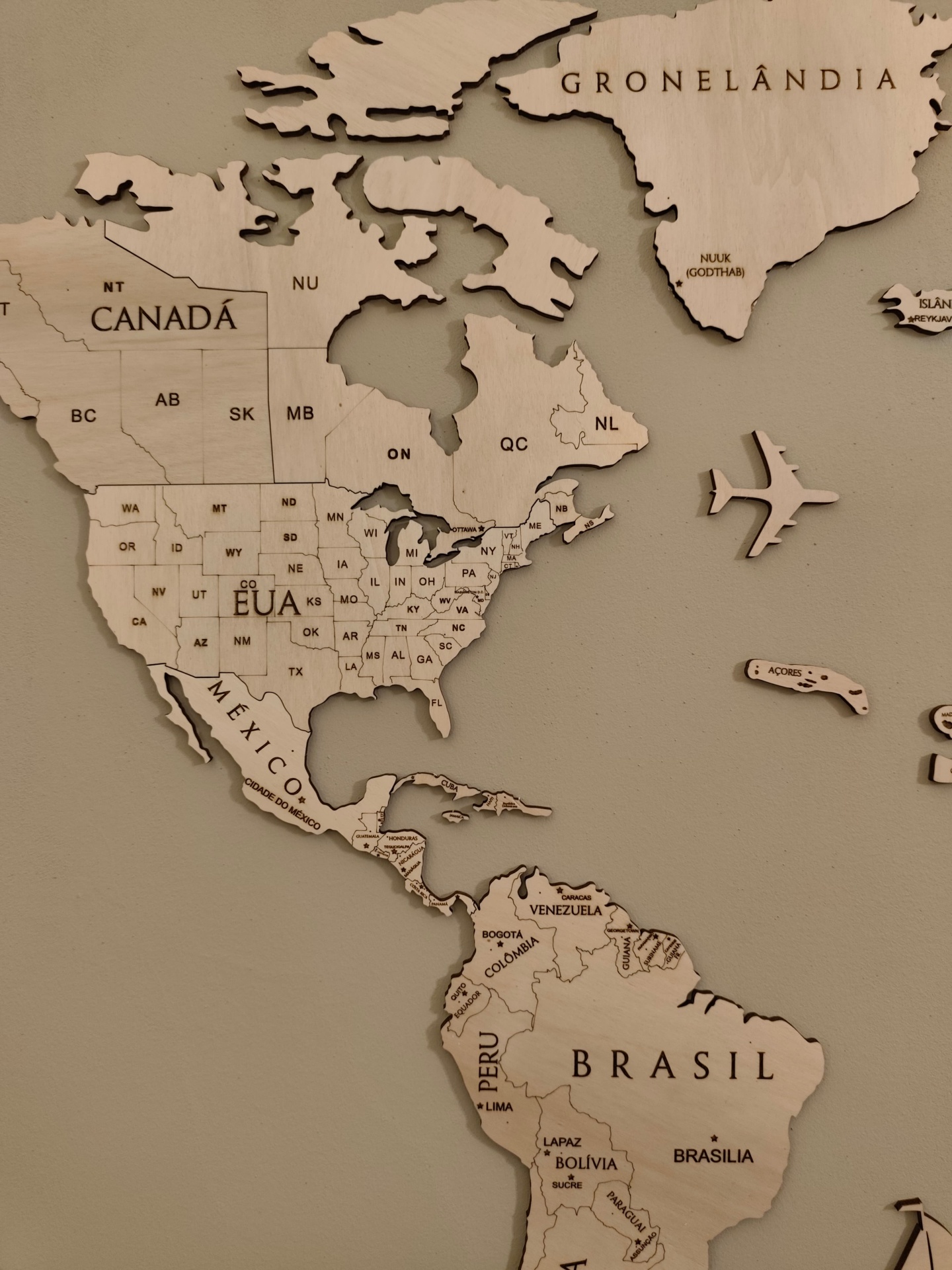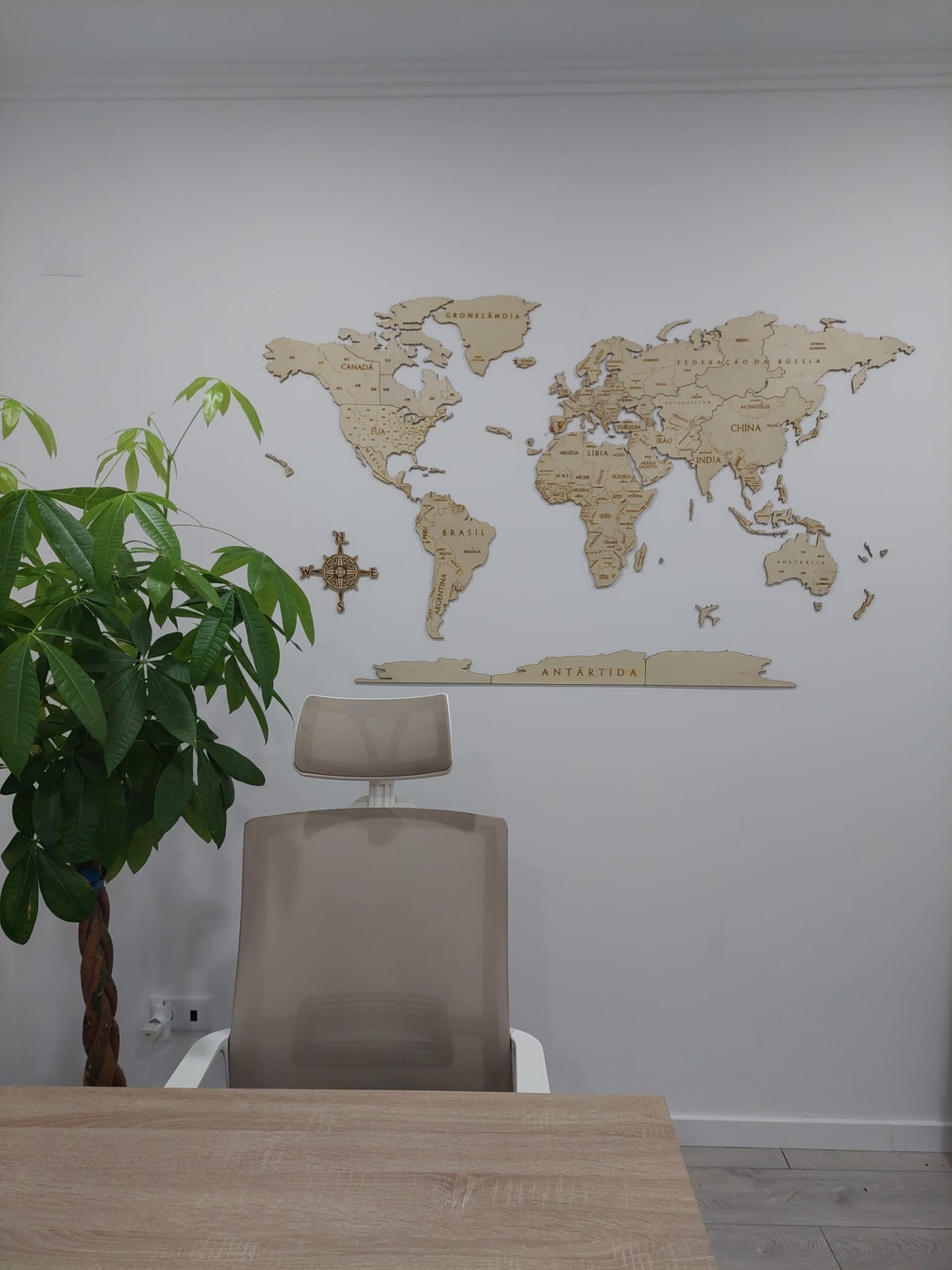 Mapa mundial de madeira feito à mão para decoração de parede – lindo design com instalação descomplicada